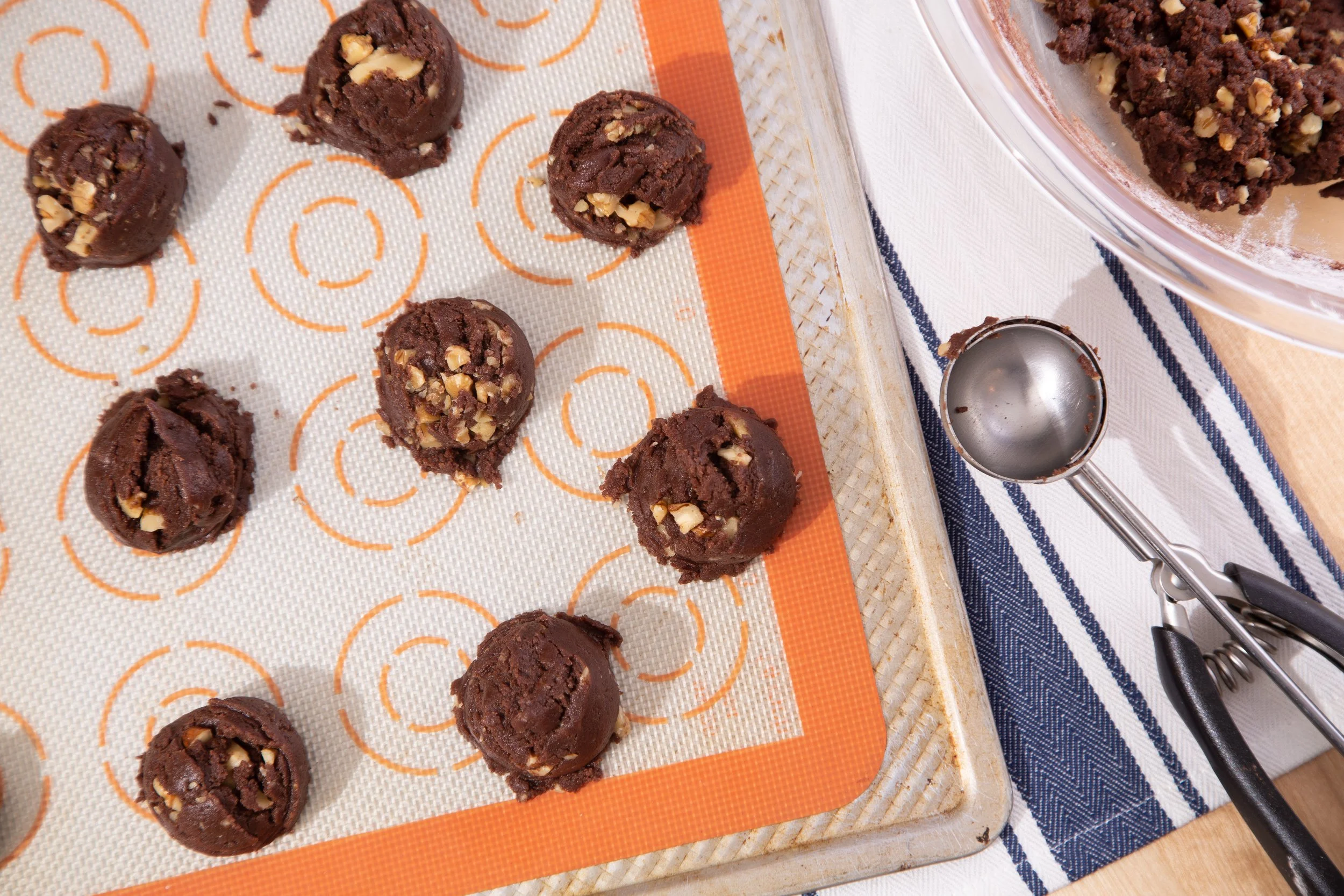 Using a spoon or cookie scoop, scoop dough onto the prepared pan. These cookies will spread some, so don’t place them too close together.